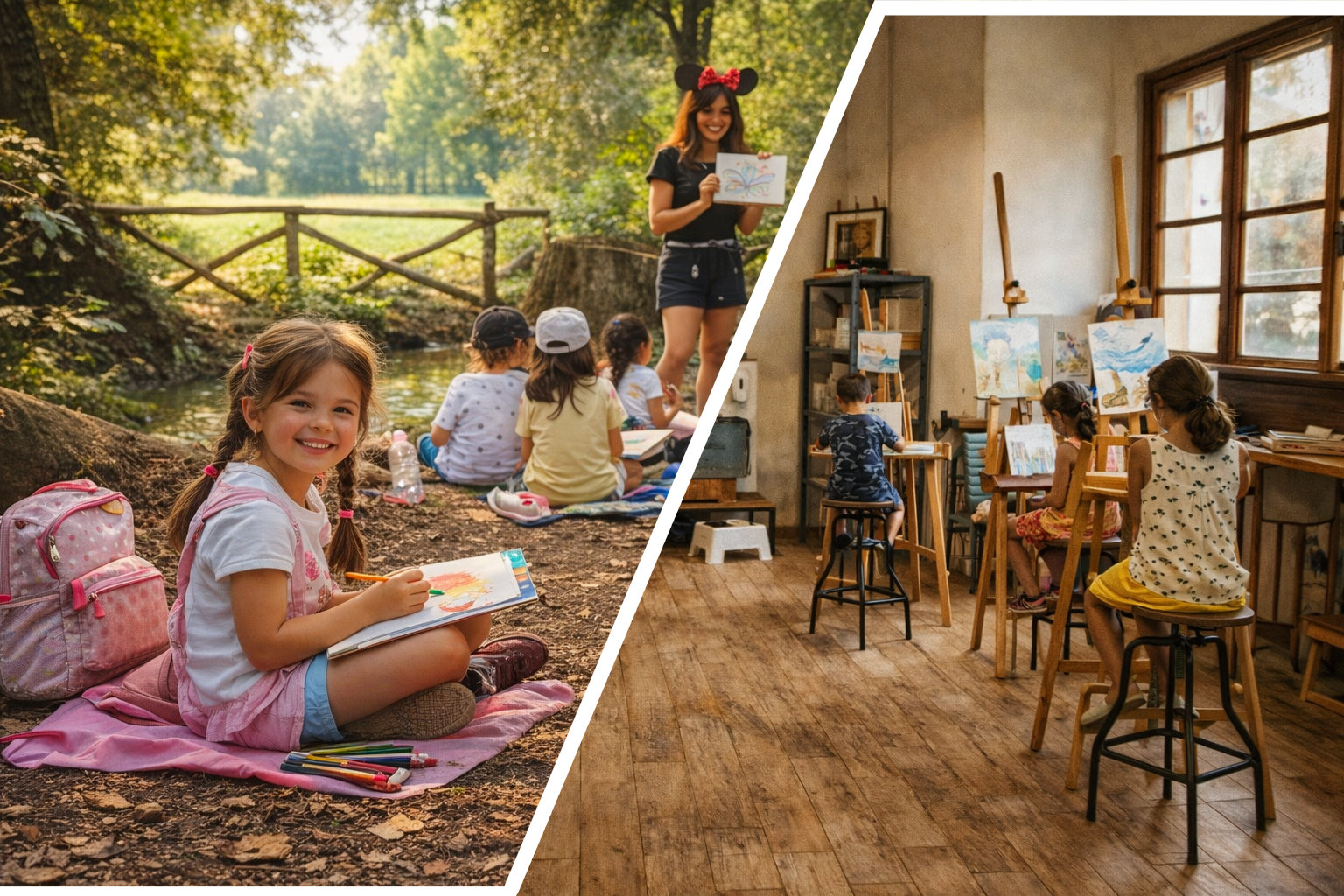 Organizziamo inoltre due uscite settimanali per dipingere dal vivo, un momento molto amato dai bambini per osservare e rappresentare ciò che li circonda.